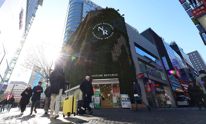 This photo, taken Dec. 18, 2024, shows the building of the cosmetics shop Nature Republic in the Myeongdong area of Seoul. The plot of the building is priced at 180.50 million won (US$125,705) per square meter based on the government's public land price calculation, the most expensive in South Korea. (Yonhap)