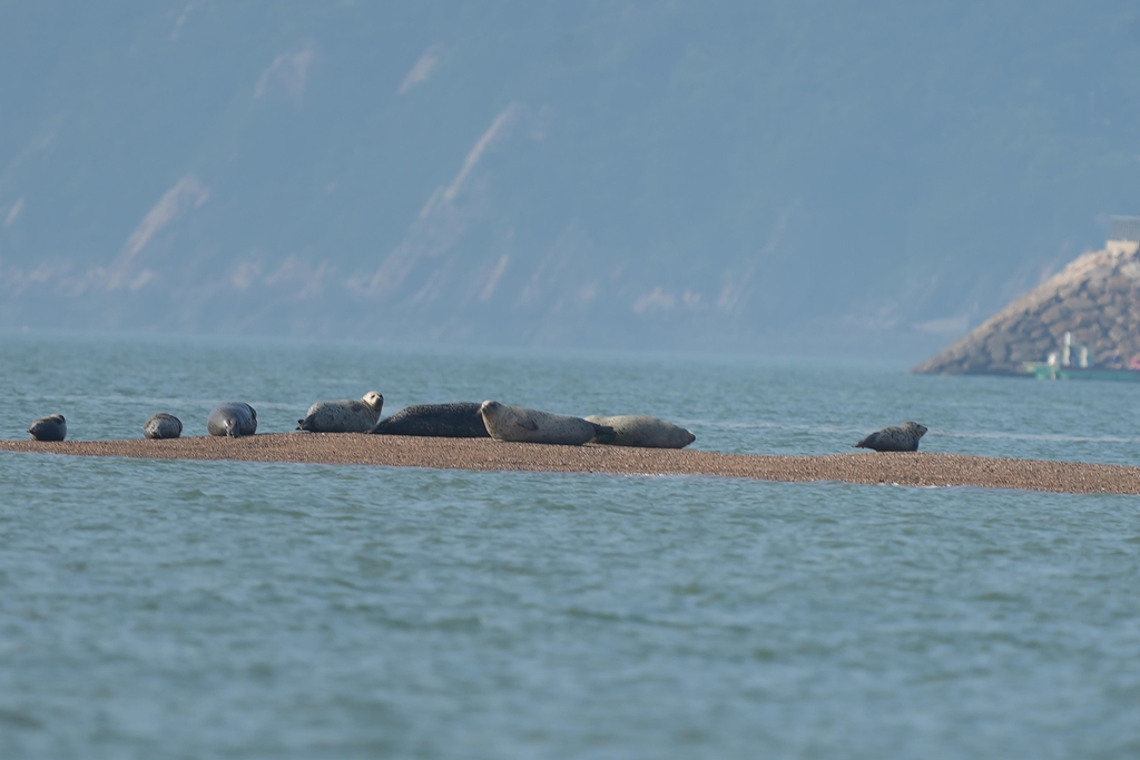 서산태안환경교육센터는 지난달 28일 오후 3시 가로림만 해역인 서산시 대산읍 벌말 앞 해상 모래톱에서 점박이물범 10마리를 관찰했다고 7일 밝혔다.