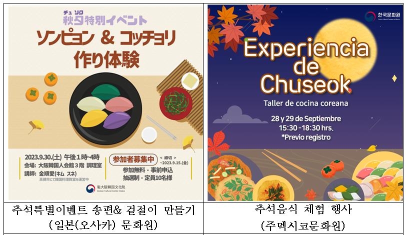 | ▲ 주오사카한국문화원과 주멕시코한국문화원 추석 문화행사 포스터 [문화체육관광부 제공. 재판매 및 DB 금지] |