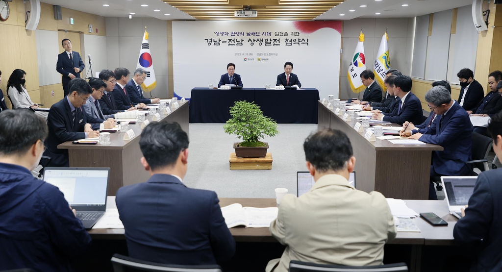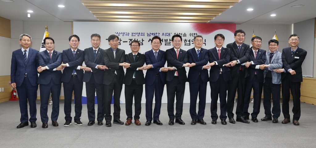 (창원=연합뉴스) 황봉규 기자 = 경남과 전남이 관광부터 우주산업까지 '상생과 번영의 남해안 시대'를 함께 열어가기로 했다.