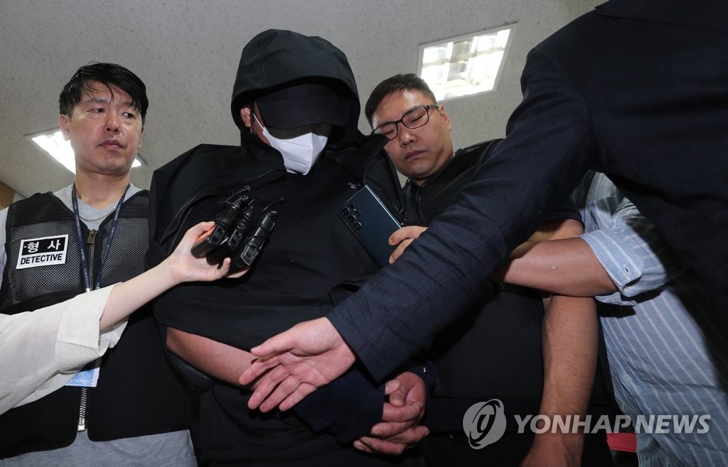 | ▲ A man in his 30s suspected of opening an emergency exit door mid-air on an Asiana Airlines plane appears at the Daegu District Court for questioning on May 28, 2023. The plane carrying 194 passengers landed safely, but some panicked passengers showed symptoms of breathing difficulties and were immediately taken to a hospital. (Yonhap) |