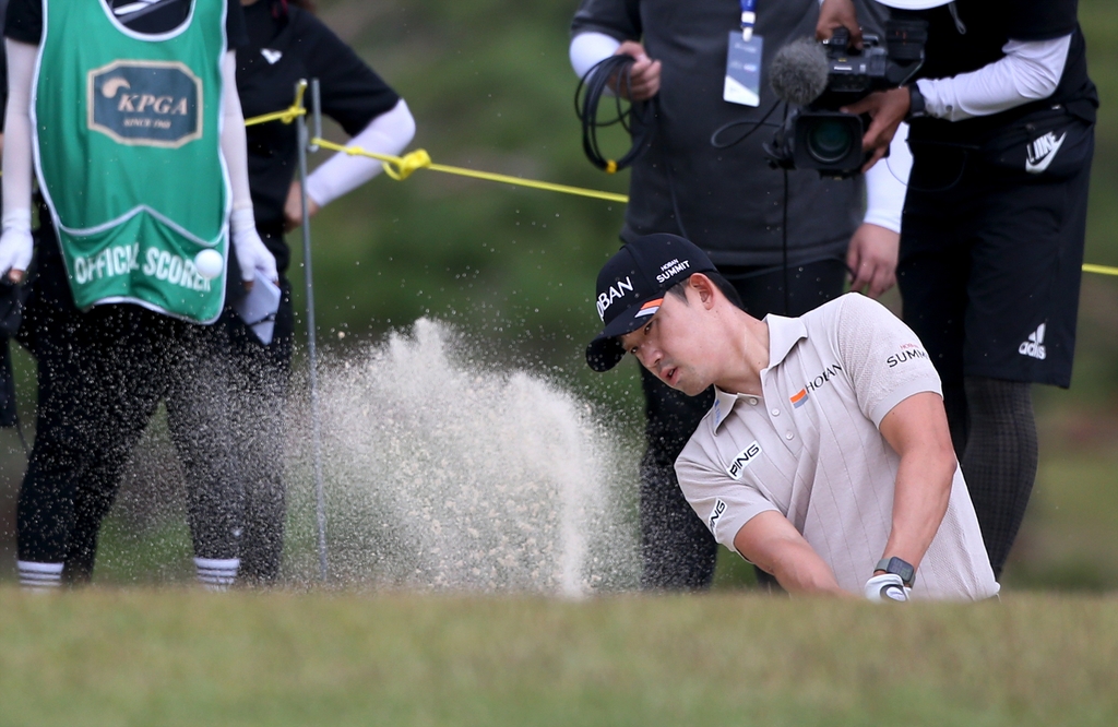 | ▲ 9번 홀에서 벙커샷을 치는 김비오 [KPGA 제공. 재판매 및 DB 금지] |