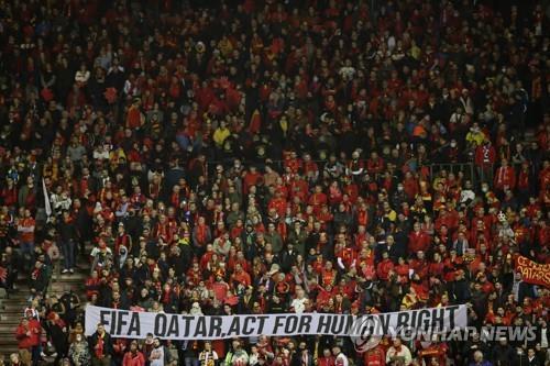 | ▲ 카타르의 인권 문제에 국제축구연맹이 나서라고 촉구하는 벨기에 축구팬들 [로이터 연합뉴스 자료사진. 재판매 및 DB 금지] |