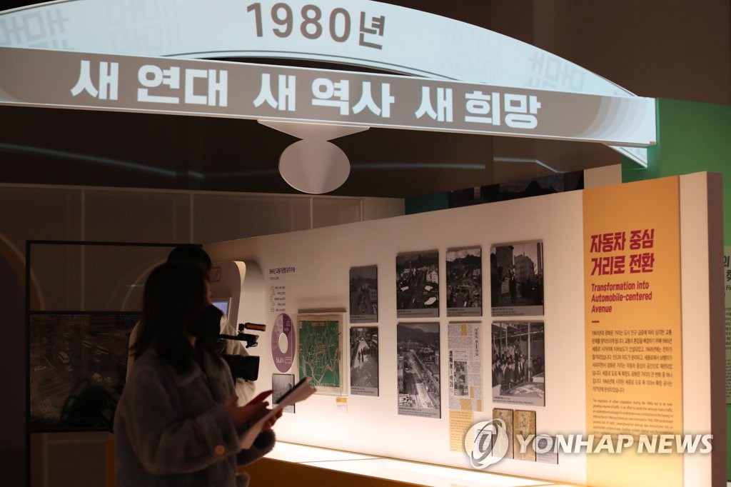 ▲ 광화문 거리 개발과 건설 (서울=연합뉴스) 강민지 기자 = 16일 오전 서울 종로구 대한민국역사박물관에서 열린 특별전 '공간으로 보는 한국 현대사, 광화문' 모습.