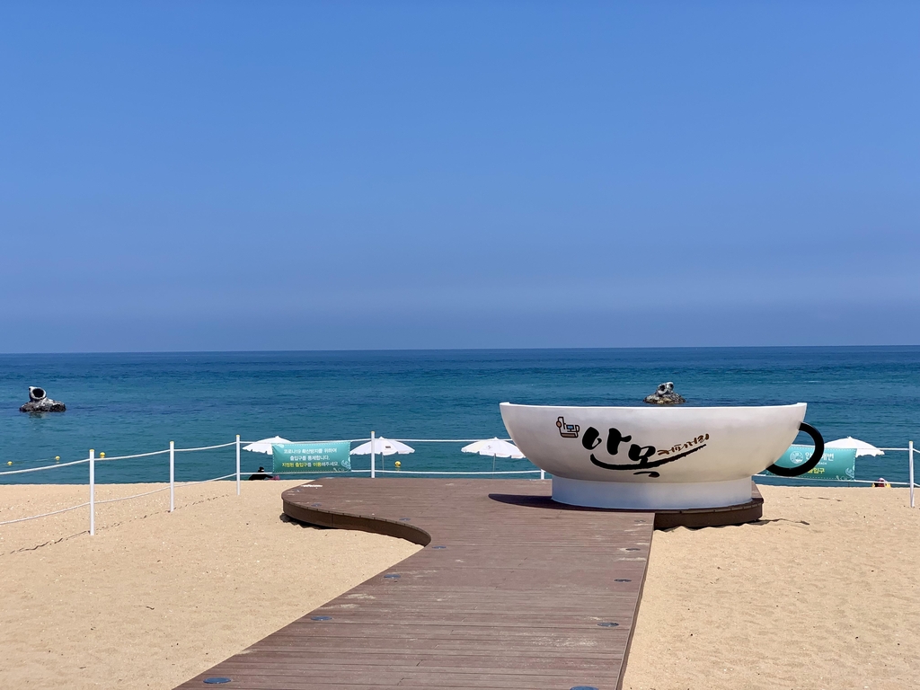 나들이객들은 해변 솔밭 그늘에 앉거나 바다를 조망할 수 있는 카페에서 푸른 바다를 바라보며 더위를 식혔다.