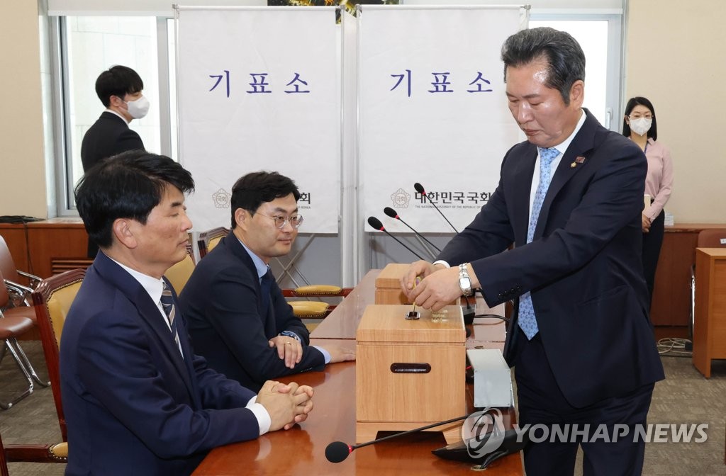 | ▲ 과방위 '방송법 개정안' 본회의 직회부 요구안 투표 (서울=연합뉴스) 백승렬 기자 = 21일 국회에서 열린 과방위 전체회의에서 정청래 과방위원장이 방송법·방송문화진흥법·한국교육방송공사법 개정안의 '본회의 부의 요구안'에 대해 무기명 투표를 하고 있다. 2023.3.21 srbaek@yna.co.kr |