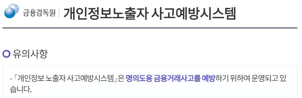 개인정보 노출자 사고예방시스템은 명의도용에 따른 금융거래사고를 예방하기 위해 도입된 제도다.