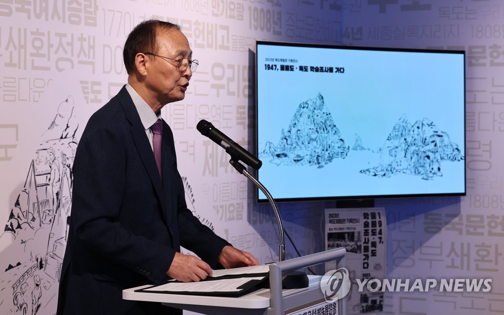 | ▲ 인사말 하는 이영호 이사장 (서울=연합뉴스) 김인철 기자 = 16일 서울 영등포구 타임스퀘어에 위치한 동북아역사재단 독도체험관에서 열린 기획전시 '1947, 울릉도ㆍ독도 학술조사를 가다' 개막식에서 이영호 동북아역사재단 이사장이 인사말을 하고 있다. 2023.8.16 yatoya@yna.co.kr |