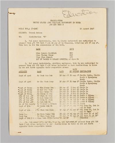 | ▲ 미군정청의 출장 명령서 [동북아역사재단 제공. 재판매 및 DB 금지] |