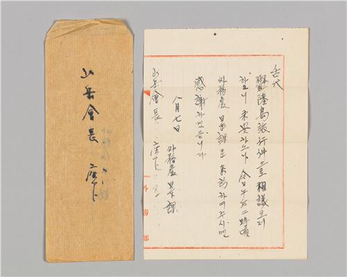 | ▲ 외무처 일본과에서 조선산악회장에게 보낸 편지 [동북아역사재단 제공. 재판매 및 DB 금지] |