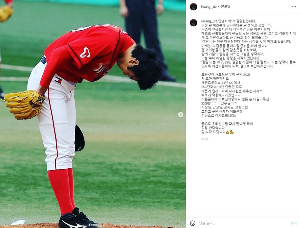 아쉬움 속에 미국 생활을 접고 KBO리그로 돌아온 김광현은 SNS에 "2년, 짧으면 짧고 길면 길었던 시간. 고생한 만큼 배운 것도 많고 얻은 것도 많았다. (MLB 도전을) 후회하지 않는다"고 빅리그에서의 2년을 떠올리며 "이젠 받은 사랑을 돌려주는 일이 남은 것 같다. 세인트루이스 33번 KK(김광현의 애칭)에서 SSG 랜더스 29번 김광현으로 새롭게 인사드리겠다"고 복귀 인사를 했다.