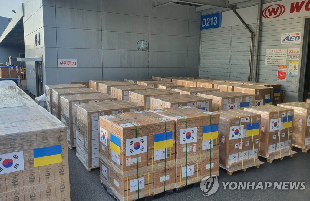 | ▲ A file photo of boxes of humanitarian aid for Ukraine, provided by South Korea's foreign ministry on April 20, 2022 (PHOTO NOT FOR SALE) (Yonhap) |
