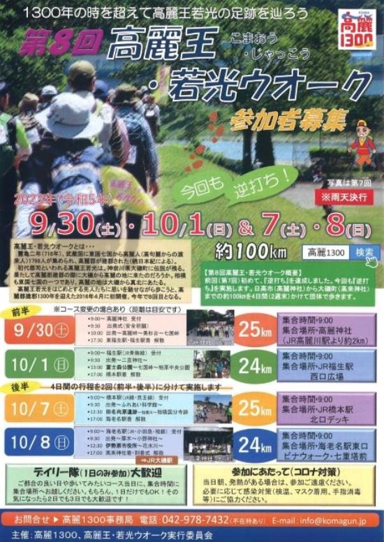 (서울=연합뉴스) 강성철 기자 = 고구려 후손의 일본 정착 기념사업을 펼치는 '고려1300 고려왕·약광워크실행위원회'는 초창기 정착 지역을 돌아보는 '고려왕 약광 워크'를 개최한다고 8일 밝혔다.