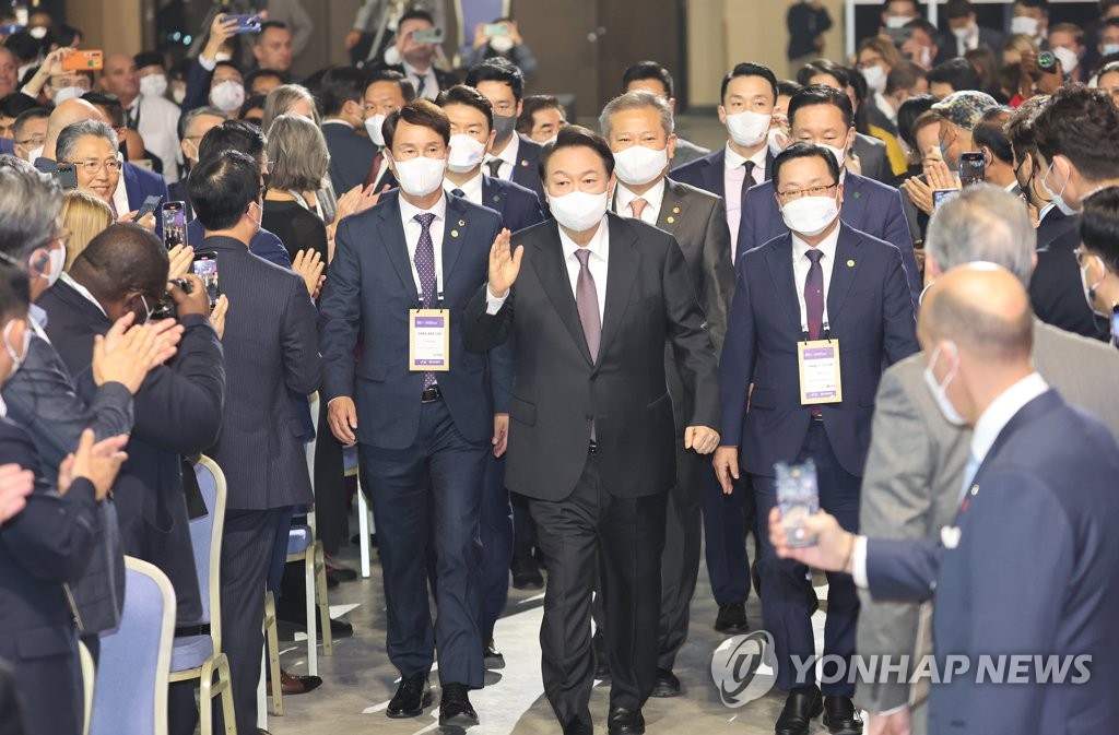 | ▲ President Yoon Suk-yeol (C) attends an opening ceremony for the 7th Congress of the United Cities and Local Governments, a global network of cities and local, regional, and metropolitan governments and their associations, at a convention center in Daejeon, 140 kilometers south of Seoul, on Oct. 12, 2022. (Yonhap) |