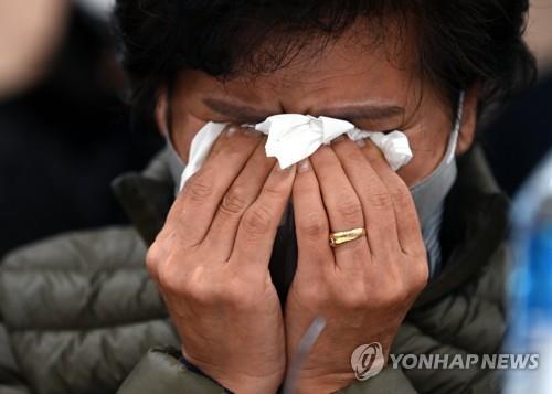 | ▲ A family member of an Itaewon crowd crush victim wipes away tears during a news conference in southern Seoul on Nov. 22, 2022. (Pool photo) (Yonhap) |