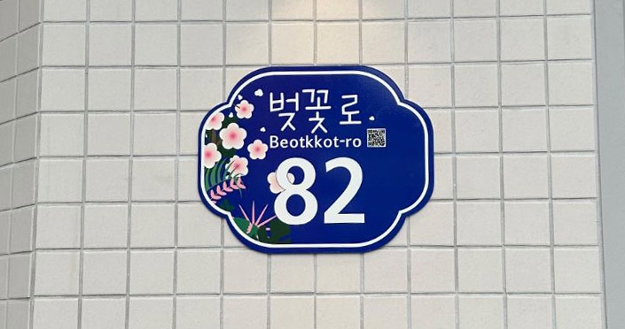 창원 진해구 벚꽃로에 사시사철 벚꽃이…자율형 건물번호판 설치