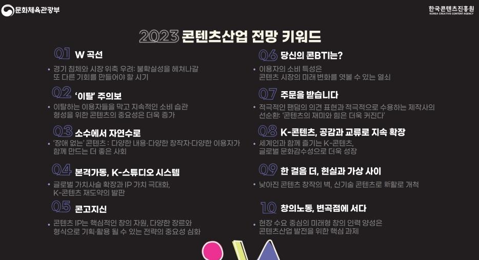 | ▲ 2023 콘텐츠산업 전망 키워드 [한국콘텐츠진흥원 제공] |