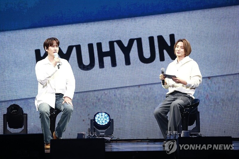| ▲ 규현 EP '리스타트' 발매 쇼케이스 (서울=연합뉴스) 진연수 기자 = 가수 규현(왼쪽)과 이특이 9일 오후 서울 용산구 블루스퀘어에서 열린 EP '리스타트(Restart)' 발매 쇼케이스에서 토크를 하고 있다. 2024.1.9 jin90@yna.co.kr |