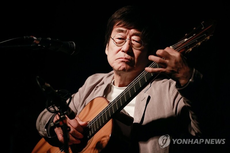 | ▲ 기타 연주하는 김창완 (서울=연합뉴스) 진연수 기자 = 가수 김창완이 23일 오후 서울 마포구 벨로주 홍대에서 열린 독집앨범 '나는 지구인이다' 발매 기자간담회에서 연주를 선보이고 있다. 2023.11.23 jin90@yna.co.kr |