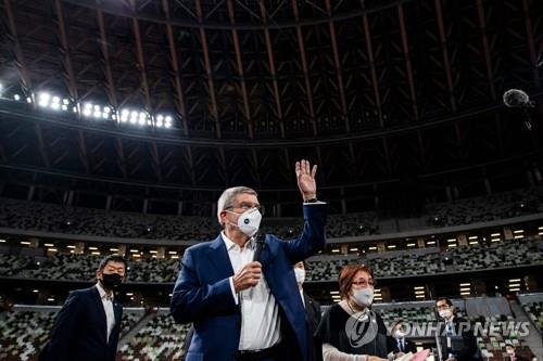 | ▲ (도쿄 AFP=연합뉴스) 지난 15∼18일 방일한 토마스 바흐 국제올림픽위원회(IOC) 위원장이 17일 도쿄 올림픽 메인스타디움(국립경기장)을 둘러보고 있다. jsmoon@yna.co.kr |