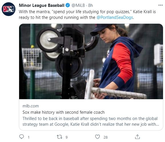 2021년 1월 비앙카 스미스(30)를 포트마이어스 훈련 시설 타격코치로 고용한 보스턴은 올해 1월에는 케이티 크랠(25)을 마이너리그 더블A 포틀랜드 시독스 육성 코치로 선임했다.