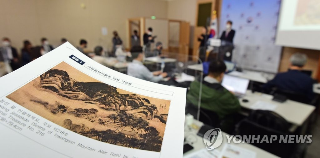 화면에 나오는 기증품은 국보 216호인 정선 필 인왕제색도. 2021.4.28 srbaek@yna.co.kr |