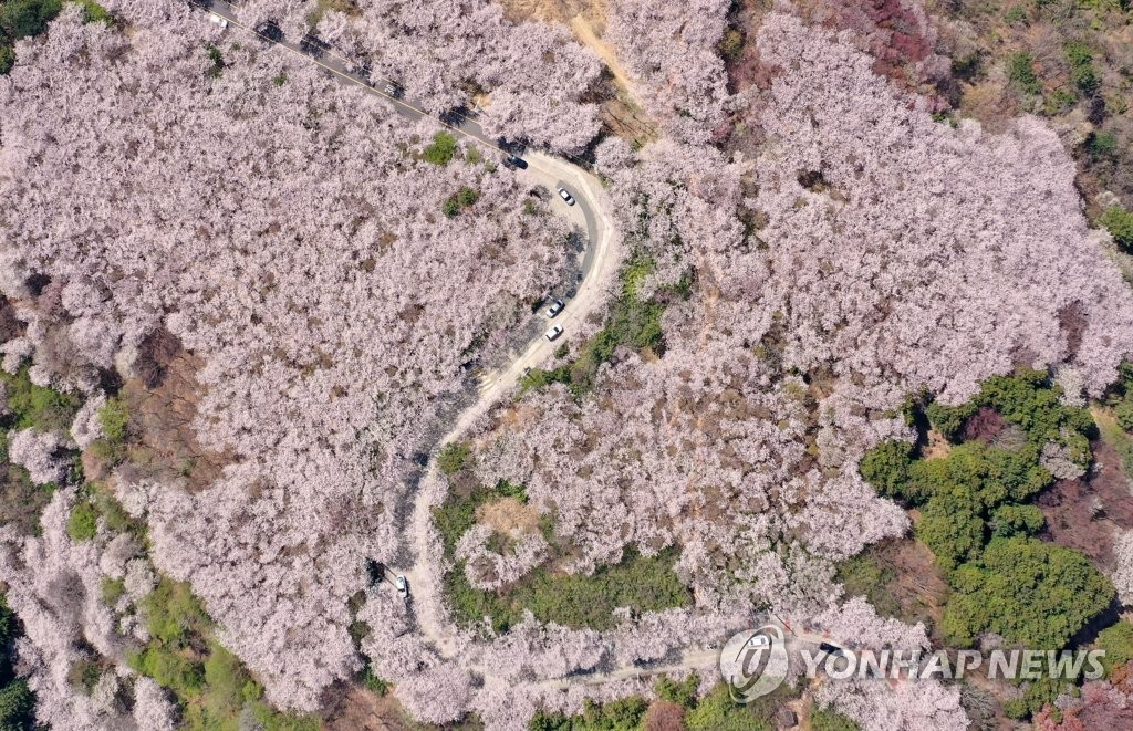 ▲ 봄날의 드라이브 (부산=연합뉴스) 손형주 기자 = 포근한 봄 날씨를 보인 5일 시민들이 부산 황령산 벚꽃 군락지를 드라이브하며 봄의 정취를 느끼고 있다. 2022.4.5 handbrother@yna.co.kr