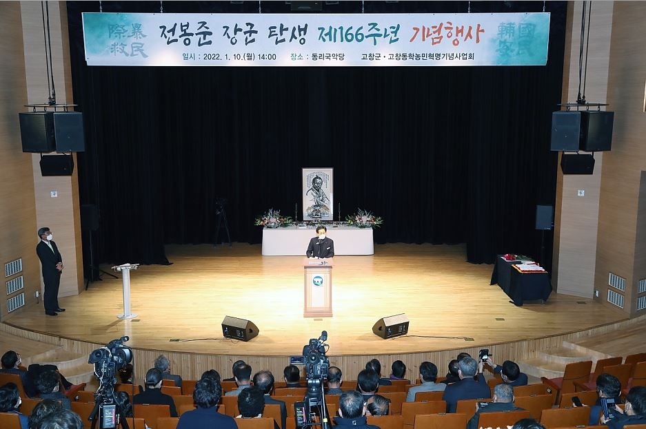 (고창=연합뉴스) 나보배 기자 = 동학농민혁명의 최고 지도자인 전봉준 장군의 탄생 166주년 기념행사가 10일 고창군 동리국악당에서 열렸다.
