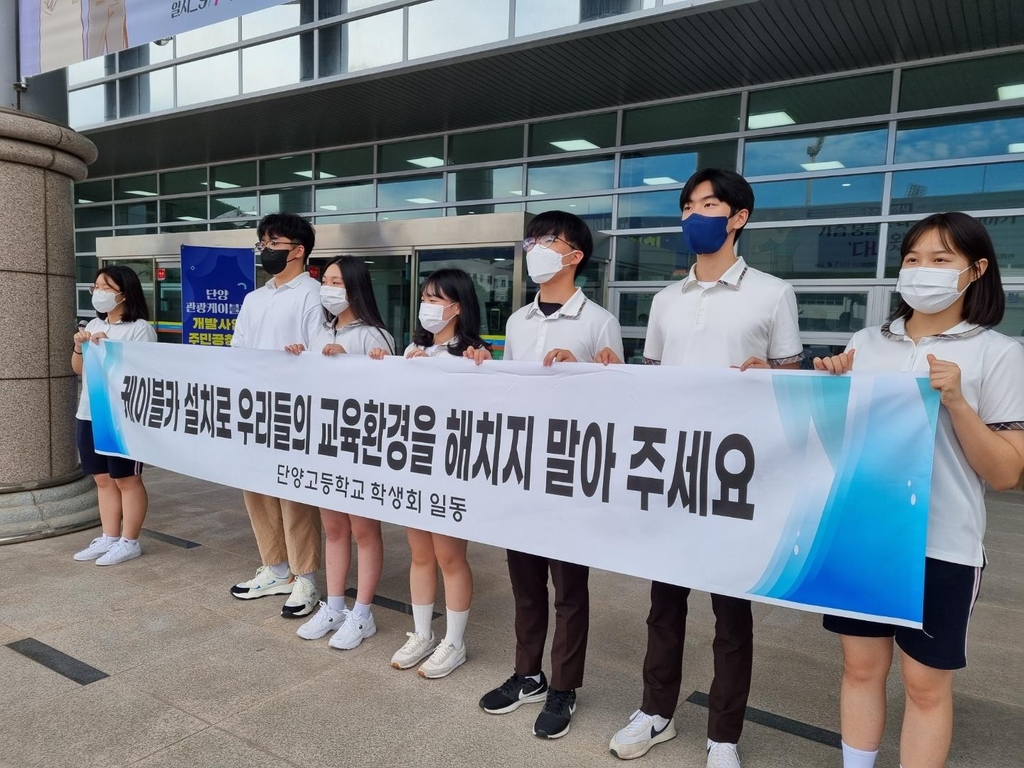케이블카 예정 노선이 이 지역 유일의 인문계고인 단양고 옆을 지나면서 학교 측과 학부모들이 학습권 침해 등을 이유로 강하게 반발하고 있다.