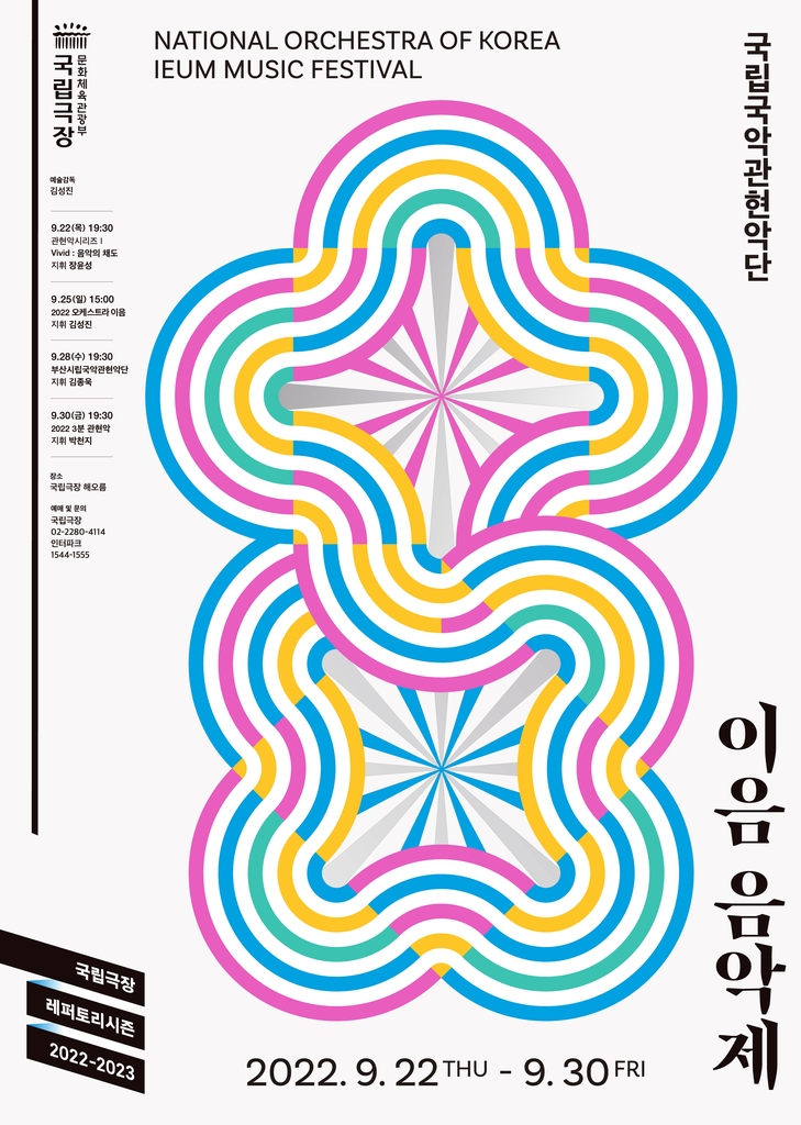 국립극장 해오름극장에서 열리는 '이음 음악제'는 24명의 작곡가, 4명의 지휘자, 280여 명의 연주자가 참여하는 창작 음악 축제로, 22일 '비비드: 음악의 채도', 25일 '2022 오케스트라 이음', 26일 부산시립국악관현악단의 공연으로 진행된다.