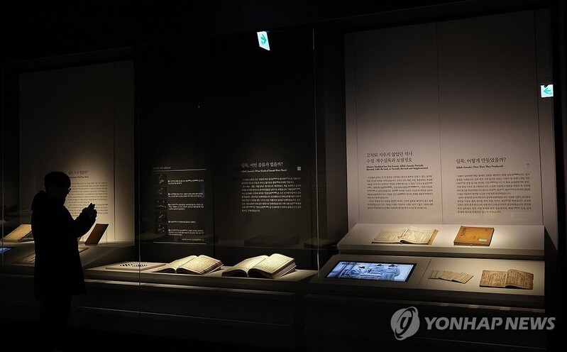 | ▲ 개관 사흘 앞둔 국립조선왕조실록박물관 (평창=연합뉴스) 양지웅 기자 = 9일 강원 평창군 국립조선왕조실록박물관에서 열린 개관 언론간담회에서 취재진이 실록과 의궤를 살펴보고 있다. 문화재청은 조선왕조실록과 조선왕조 의궤를 보관·전시하는 박물관인 국립조선왕조실록박물관을 이달 12일 정식 개관할 계획이다. 2023.11.9 yangdoo@yna.co.kr |