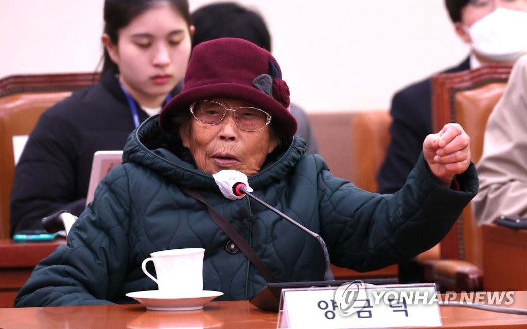 Yang Geum-deok, a 94-year-old victim, also attended the parliamentary meeting.