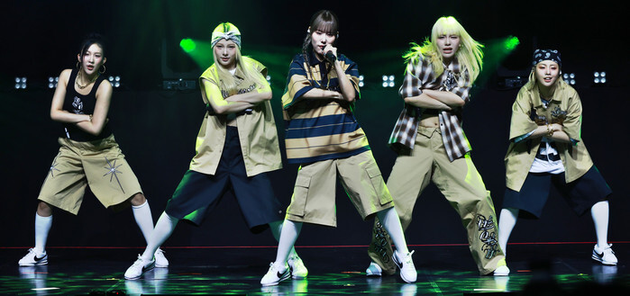 S. Korean girl group Young PosseSouth Korean girl group Young Posse performs during a showcase in Seoul on Aug. 21, 2024, to promote the release of the group's third mini album "Ate That." (Yonhap)(END)