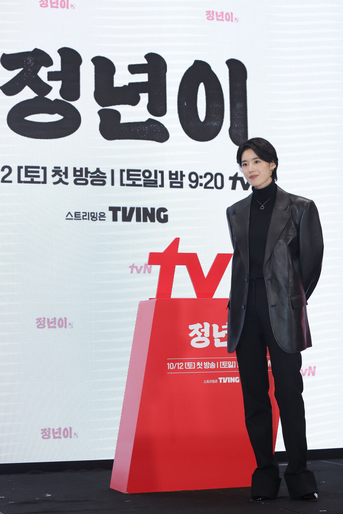 South Korean actress Jung Eun-chae, who stars in the new drama "Jeongnyeon: The Star Is Born," poses for a photo during a publicity event in Seoul on Oct. 10, 2024. The first episode of the drama will be aired by the local cable TV network tvN on Oct. 12. (Yonhap)