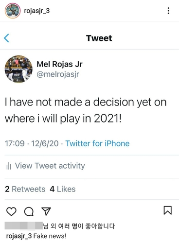 로하스는 7일 자신의 트위터에 "2021년에 어디에서 뛸지 아직 결정하지 않았다!"라고 입장을 밝혔다.