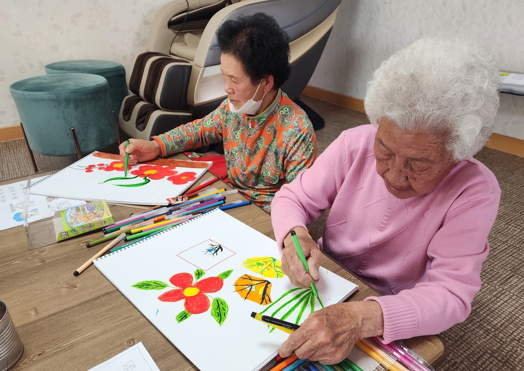 최고령인 정순선(95) 할머니는 "복잡하고 어려워서 잘 못한다"면서도 스케치북에 빨간 꽃과 나무를 멋지게 그려냈다.