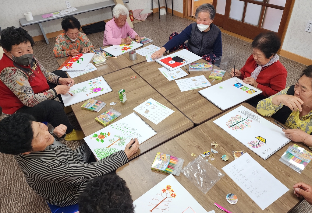 농촌 어르신들의 여가 선용과 활기찬 노후생활에 도움이 되고자 이 마을에서 4년째 어르신들과 미술 활동을 하고 있다.
