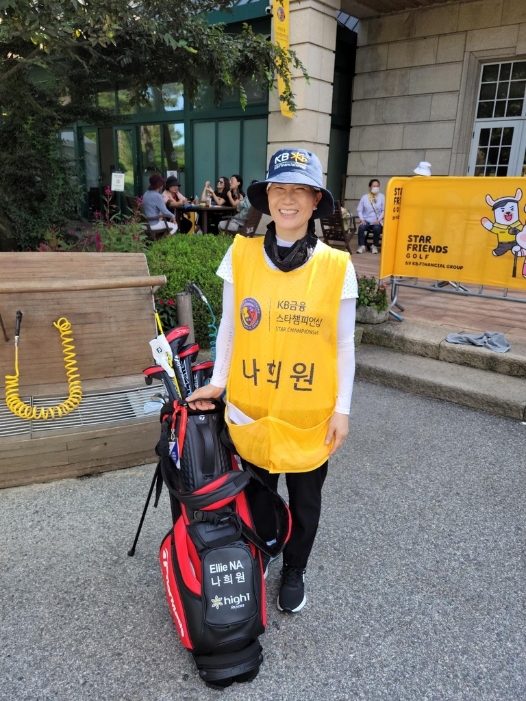 나희원(28)의 백을 멘 하우스 캐디 김영숙(57) 씨는 못내 아쉬운 표정을 감추지 못했다.