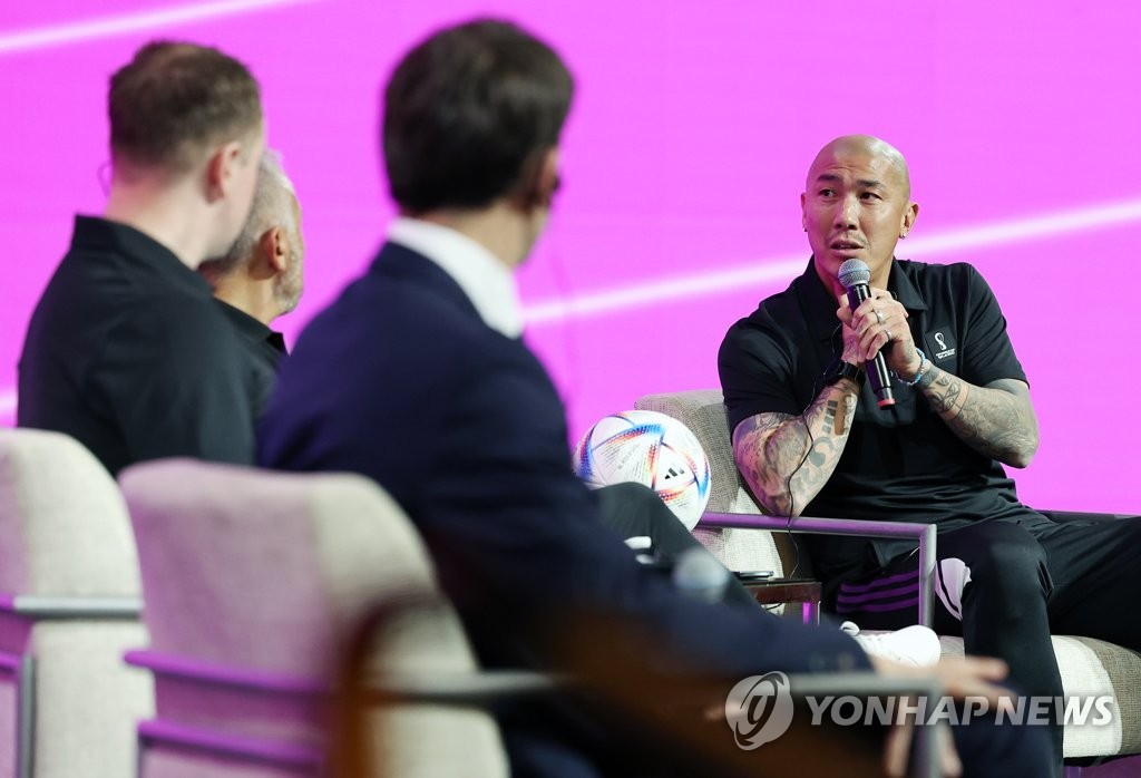 | ▲ 차두리, 피파 TSG 브리핑 참석 (알라이얀=연합뉴스) 임헌정 기자 = 차두리 FC서울 유스 강화 실장이 30일 오후(한국시간) 카타르 알라이얀의 카타르 국립 컨벤션 센터(QNCC)에 마련된 2022 카타르 월드컵 메인 미디어 센터(MMC)에서 열린 국제축구연맹(FIFA) 기술 연구 그룹(TSG) 브리핑에 참석하고 있다. 2022.11.30 kane@yna.co.kr |