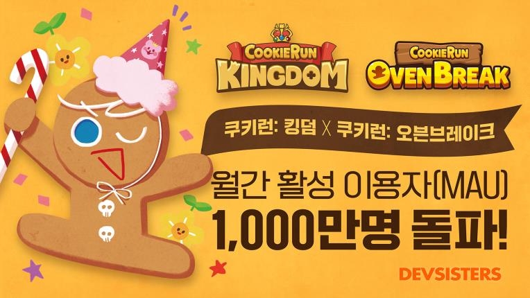 (서울=연합뉴스) 한혜원 기자 = 데브시스터즈[194480]는 대표 게임인 '쿠키런: 킹덤'과 '쿠키런: 오븐브레이크'의 전세계 월간 활성 이용자수(MAU)가 지난달 기준 1천만명을 돌파했다고 8일 밝혔다.