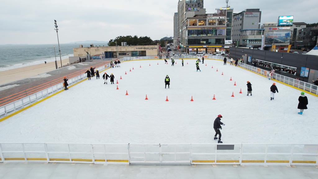 (보령=연합뉴스) 올겨울 충남 보령시 대천해수욕장에서는 바다를 보며 스케이트를 타는 색다른 경험을 할 수 있다.