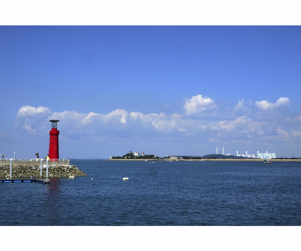 홍성 12경 중 하나인 남당항에 자리 잡은 하얀 등대는 반짝이는 은빛 수면과 붉게 물든 석양이 아름다운 낙조 명소다.