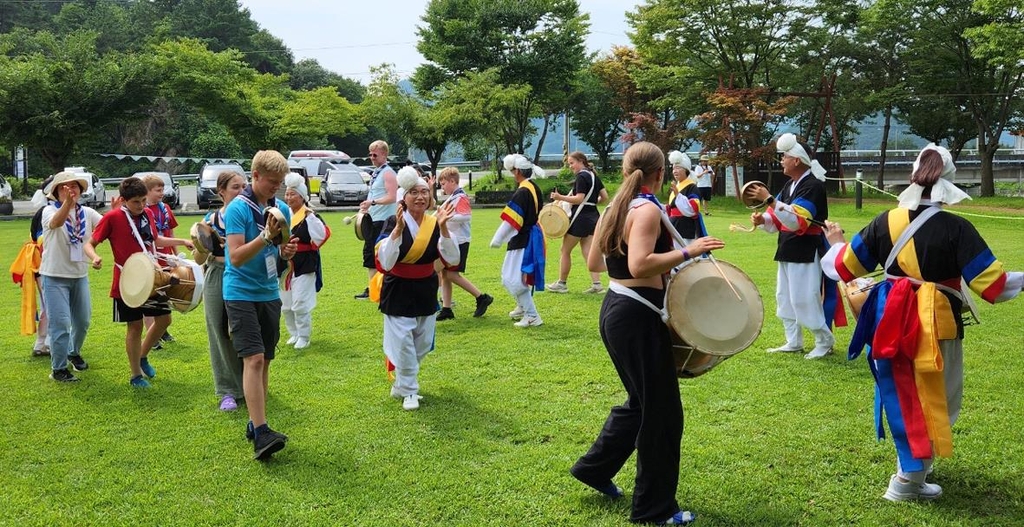 | ▲ 농악 배우는 잼버리 대원들 [전북도 제공. 재판매 및 DB 금지] |