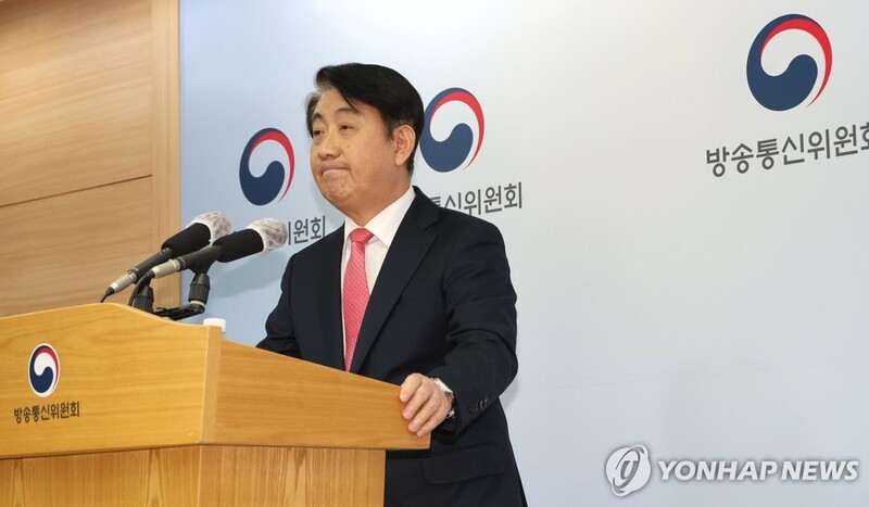 | ▲ Lee Dong-kwan, chief of the Korea Communications Commission, holds a press meeting on his resignation on Dec. 1, 2023. (Yonhap) |