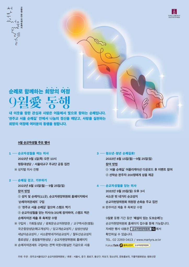 이 밖에 청소년·청년 대상 순례 행사인 '청소년, 청년 순례길로!' 교구 성지해설사의 설명을 들으며 순례길을 걷는 '9월愛 도보 순례' 등도 마련된다.