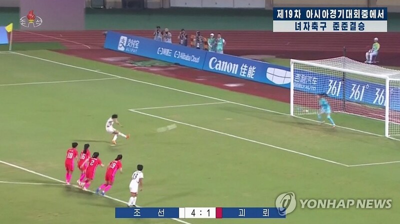 A score bug on North Korean state TV referred to South Korea as such during a quarterfinal match during the Asian Games on Sunday. The official Korean Central News Agency also said the country's women's football team advanced into the semifinals following a 4-1 match with "the region of south Korean puppets."