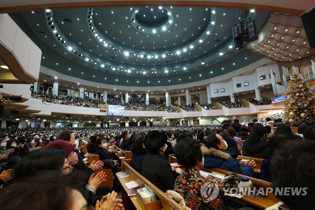 | ▲ 3년 만에 인원 제한없는 성탄 예배 (서울=연합뉴스) 이지은 기자 = 성탄절인 25일 오전 서울 영등포구 여의도순복음교회 대성전에서 성탄 축하 예배가 열리고 있다. 방역 지침 완화에 따라 주요 종교 시설에서는 코로나19 확산 사태 이후 3년 만에 처음으로 참석 인원 제한없이 성탄 의식이 거행됐다. 2022.12.25 jieunlee@yna.co.kr |