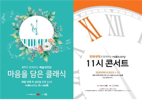 ▲ 예술의전당, 오전 11시에 듣는 클래식 공연 = 예술의전당은 오는 23일 KT 협찬으로 '마음클래식'을, 29일 한화생명 협찬으로 '11시 콘서트'를 개최한다. 두 공연 모두 오전 11시 콘서트홀에서 열린다.