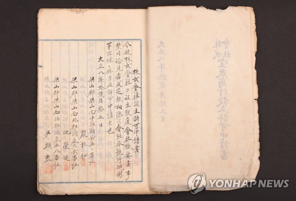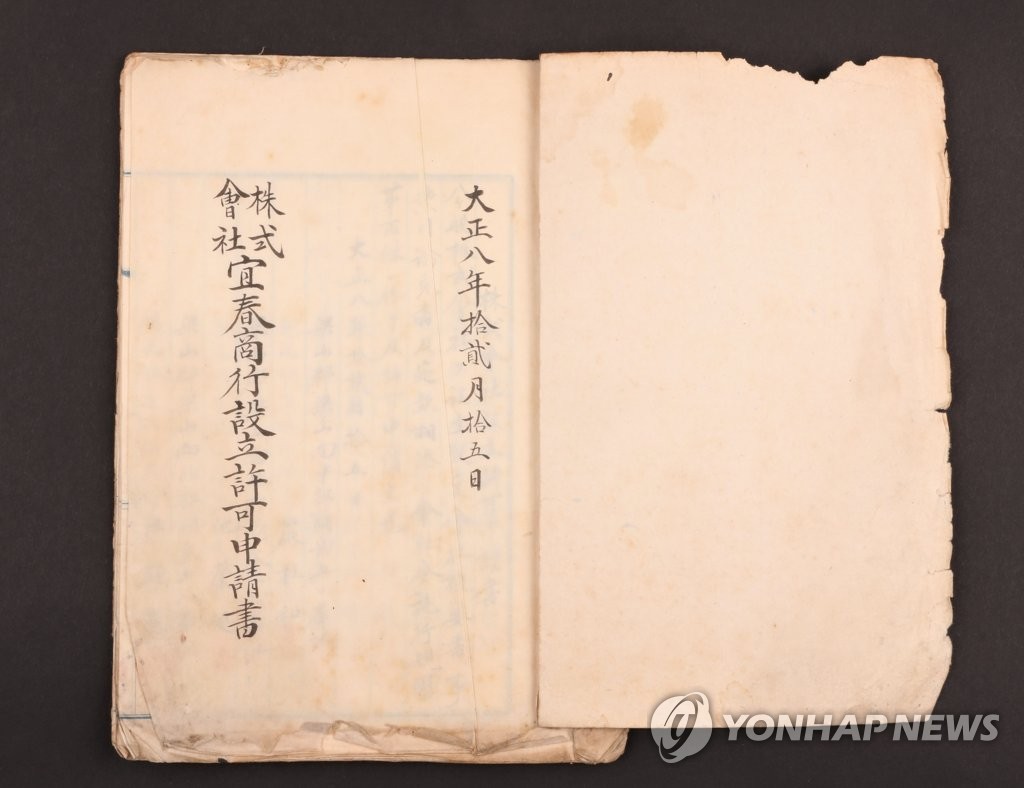(양산=연합뉴스) 이정훈 기자 = 경남 양산시립박물관은 1919년 3·1 독립운동 후 양산지역에서 경제적 자립·비밀 독립자금을 마련하고자 설립된 '의춘상행'(宜春商行) 설립 허가신청서 원본을 찾았다고 17일 밝혔다.