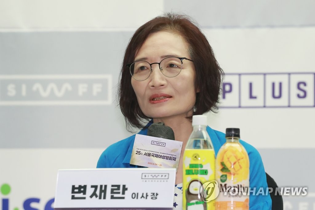 | ▲ 인사말 하는 변재란 이사장 (서울=연합뉴스) 진연수 기자 = 1일 오후 서울 마포구 스탠포드호텔에서 열린 제25회 서울국제여성영화제 공식 기자간담회에서 변재란 이사장이 인사말을 하고 있다. 2023.8.1 jin90@yna.co.kr |